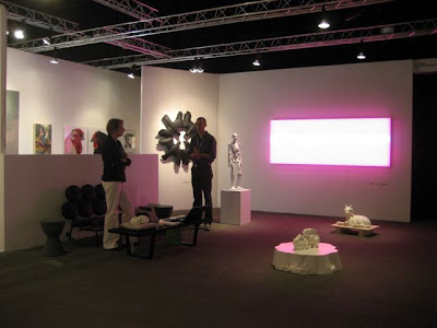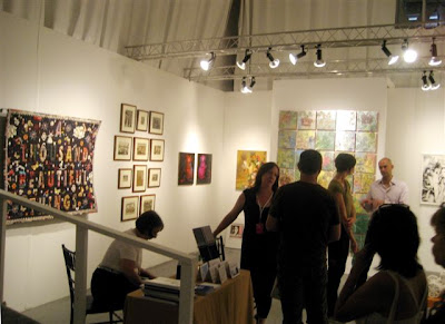 Two views of Thatcher Projects' booth: Above, Omar Chacon painting, left, and Robert Sagerman painting, right.