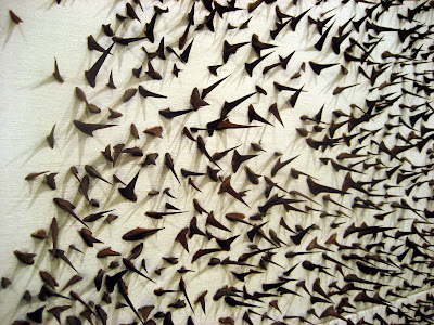 No, I'm not impugning the artist or his esthetic. This work is composed of acacia thorns, thousands of them. Better keep your distance, as the detail below suggests