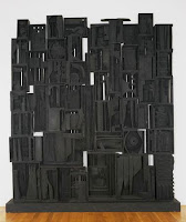 The maquettes are similar but different. Up close I see that these paintings are more sculptural. Where Schifano implied a foreground in the large paintings, here that space is physical, extending out to meet you. The space pours from the wall to the floor. And since I’m making associations, it crosses my mind that those floor elements function conceptually as, well, welcome mats.