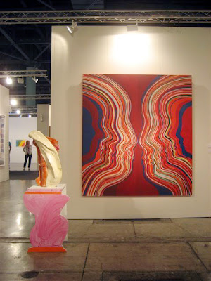 My kind of booth: Projects SD, Barcelona, and Galerie Jocelyn Woolf, Paris. Pieter Vermeesch paintings and painted wall; I'm working on the names of the sculptors
