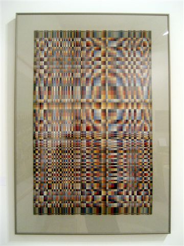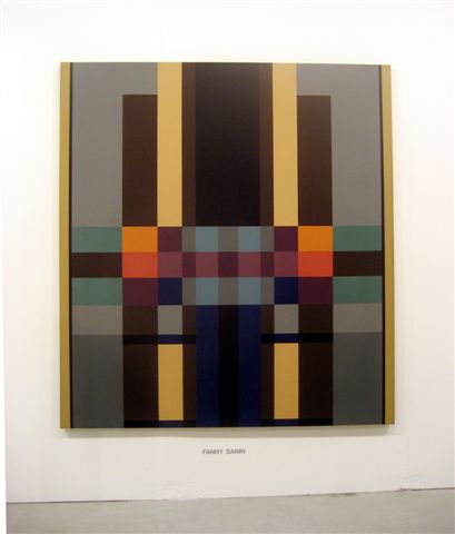 Tangerine realities: at the information desk above, with a painting by Gene Davis