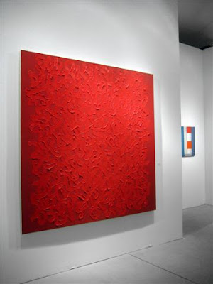 I saw a lot of art at Art Miami. From the previous post you know that the venue had over 100 galleries. Fortunately it had a less maze-like layout than ABMB so although I had just one long afternoon there, I believe I saw everything. Let me emphasize that I am just one set of eyes. Another person would have given you an entirely different report, and 10 people would surely have given you that many times more. For instance, I photographed a lot of red and red-orange at this fair. Was there really more at this end of the spectrum, or were my tired eyes just focusing on these retinally vibrational hues--like Four Loko for the optic nerve? I don't know. In fact, I didn't realize I'd shot so much of it until I got back to my hotel room that night and started downloading.