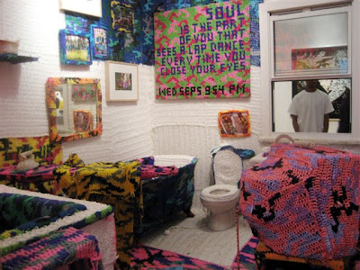 Then I came upon the installation, below, at the Christopher Henry Gallery, New York, which explained the sportscar cozy out front. It takes a particular kind of obsessiveness to do a project like this--which I can appreciate, given that I'm writing this post after a week and a half of non-stop blogging about the fairs. The work is by an artist who goes by the name of Olek. It was a crowd pleaser.