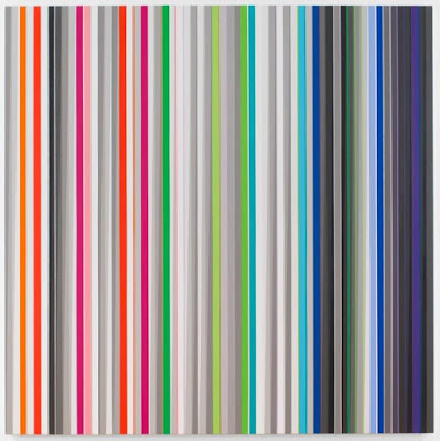 Gallery notes tell us that ten paintings make up this series as well, and that the gridded composion is based on "a Fibonacci sequence derived from a 3:5:8: ratio." Tworkov's aim was to use this sequence to create-- I think these are the artist's words-- "identical structures but make each one a totally different painting experience (through) the color and the brushing." I am lingering here because this series is my favorite of his oeuvre.