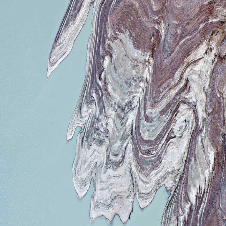 Two vertiginous paintings by Rob DeOude, Tantrum Mash-up, top, and Misty Limit